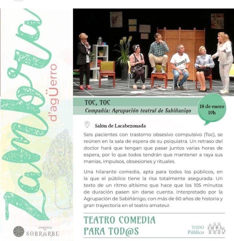 La agrupación teatral de Sabiñánigo trae al salón de La Cabezonada la obra Toc, toc. El sábado 18 de enero a las 19 horas, con entrada libre.