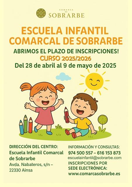 Hasta el 9 de mayo, inscripciones en la escuela infantil comarcal, a través de la sede electrónica